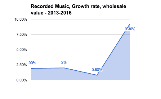 And yet despite focussing on the conveniently elastic notion of “retail value”, even the recorded music industry eventually has to confess some growth – as shown below: